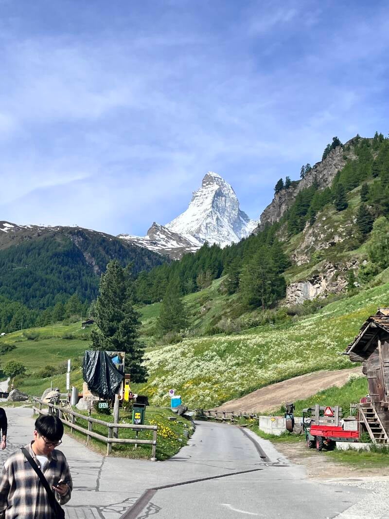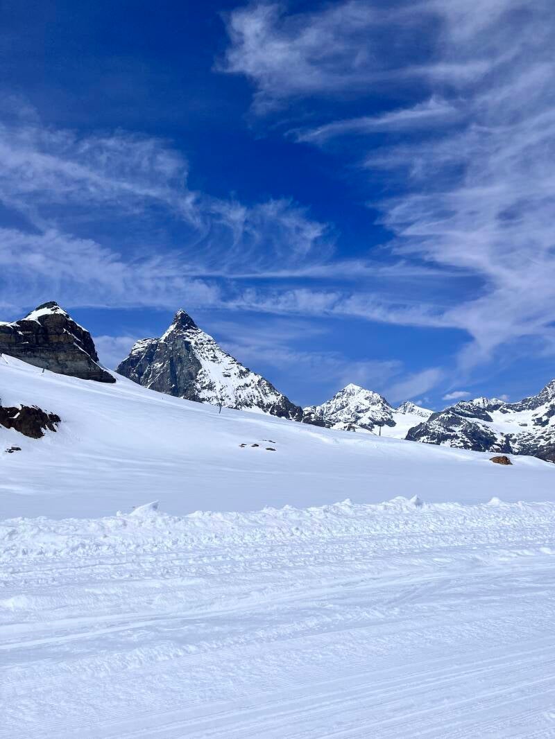 Nous sommes partis à 5 h depuis Montreux en train, direction Zermatt, pour aller jusqu'aux télécabines à l'autre bout du village. Nous l'avons traversé à pied et avons pu profiter de la magnifique vue sur la face nord du Cervin, tout en regardant les vitrines des boutiques de luxe qui bordent la rue principale.