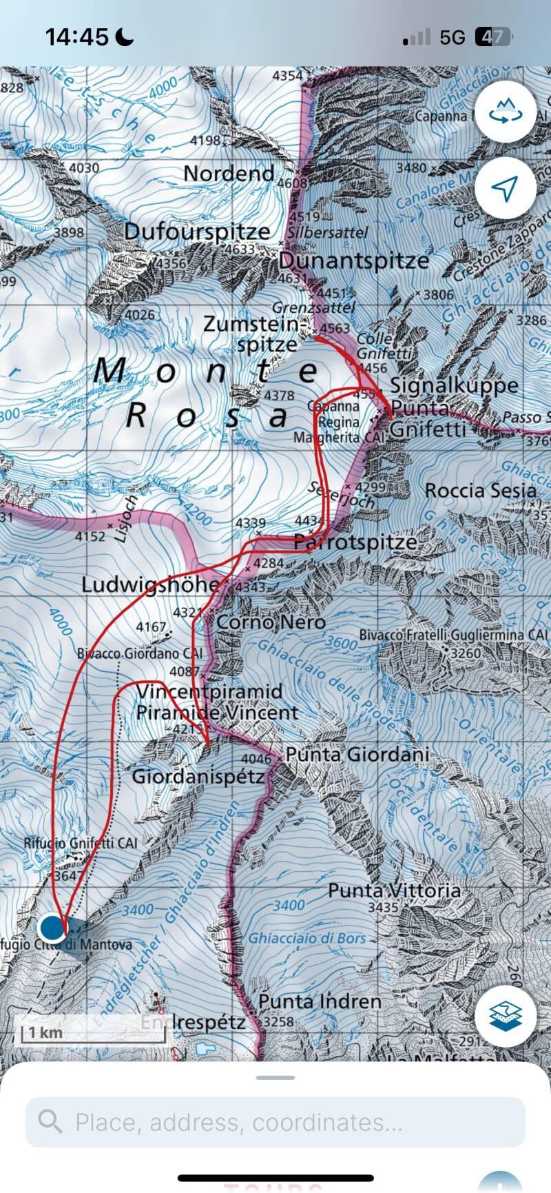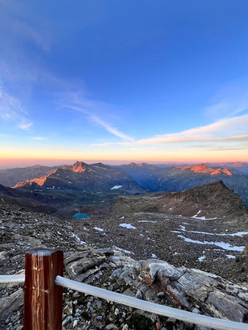 Je suis parti avec Vincent le 29 juillet au matin, en direction de la vallée d’Aoste et du massif du Mont Rose. L’objectif initial était de traverser sous les Lyskamm pour rejoindre Zermatt, mais ce projet a été compromis par les récentes chutes de neige. Nous avons donc décidé de consacrer une journée à l’ascension de la Pointe Gnifetti (4559 m), en passant par le plus grand nombre de sommets possible, avant de basculer ensuite vers le massif du Mont-Blanc.