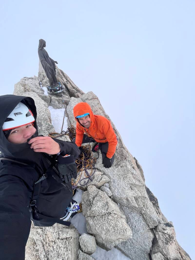 Nous sommes arrivés au « premier sommet », qui est une pointe 10 m en dessous du sommet et séparée par une arête glissante.